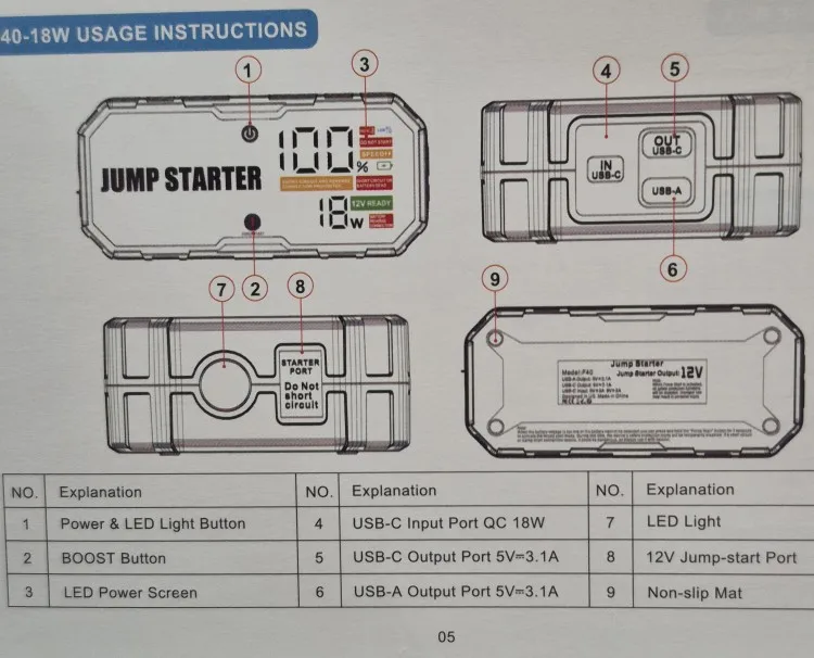 - Multi-Function Power Bank: Dual USB ports (USB-A and USB-C, 5V/2A) charge phones, tablets, and devices—essential backup power for emergencies and road trips